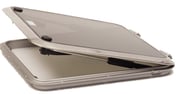 A mirror polished stainless steel lid that is mounted to an aluminum base with beautifully sculpted cast stainless steel hinges