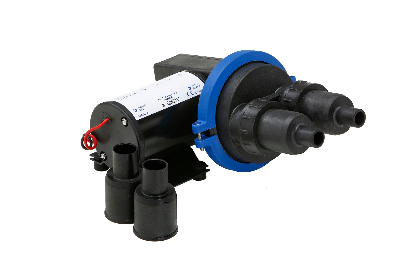 The new modern diaphragm pump can be set up in several applications and with different pump motor configurations. It is easy to install as a bilge pump in any leisure craft or anywhere after the drain outlet in the wastewater system or directly in the Matromarine waste water tank. No filters are required, the pump can run dry, and can also handle a mixture of air and water without difficulty. Perfect for installation in tight spaces, the SUPERCOMPACT diaphragm pump can be incorporated into a small boat bilge space. Available in version with double 19 mm port connection and 25 mm port connection. Equipped with straight port connections.