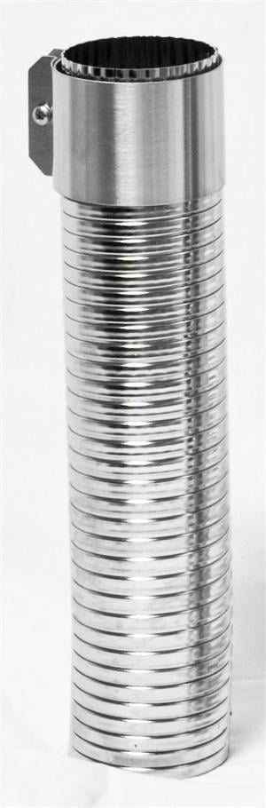 10” long pipe with a 1” crimp for connecting on one side, 304 stainless steel, used to expel exhaust gases. 2.5"