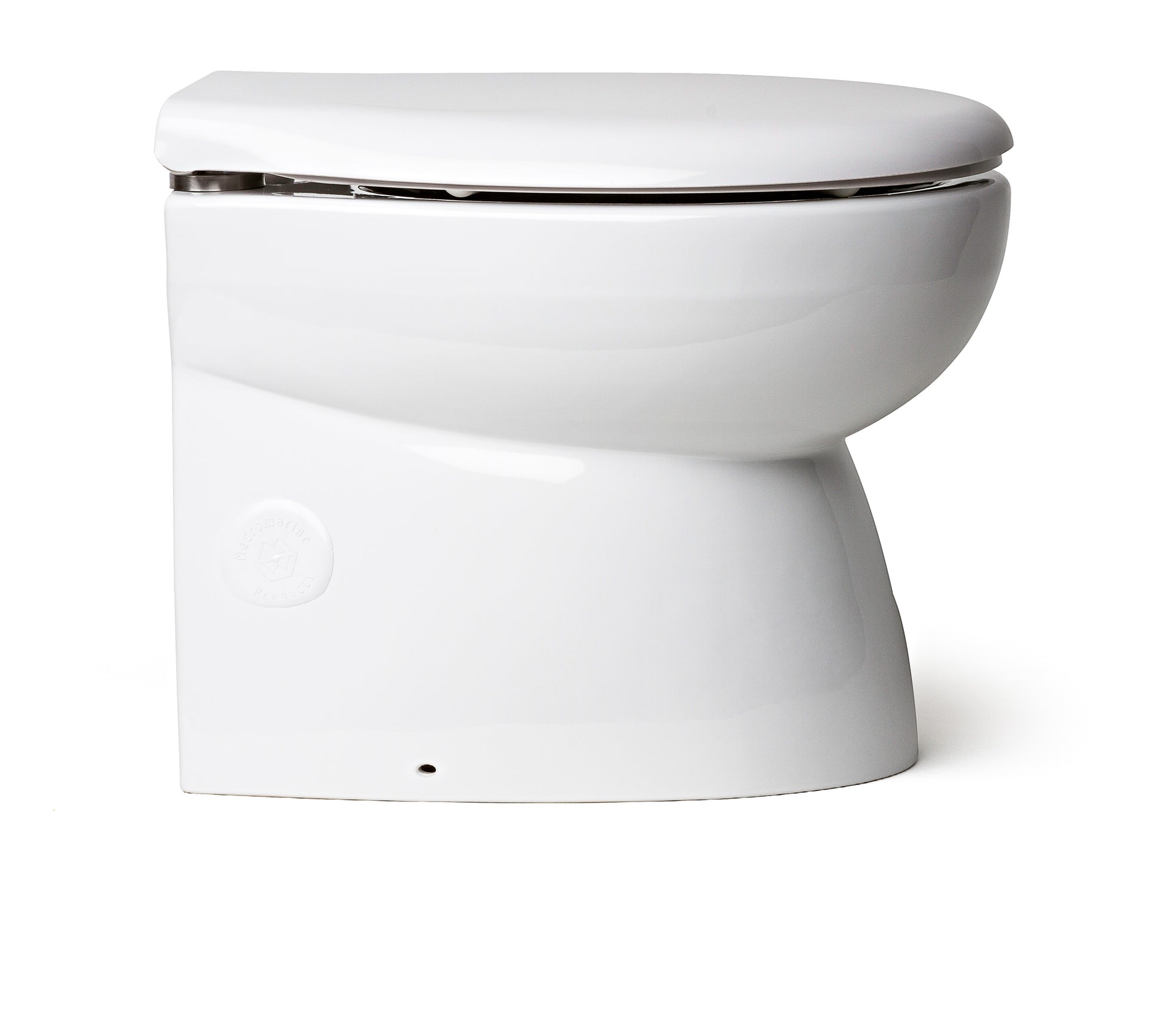 The well-proven and popular electric standard toilets with combined pump unit for flushing and wasting. All metal parts and screws are in stainless steel. The base is in impact-resistant material. Can be installed either above or below the sea level. A special macerator pump allows the expulsion of up to 3.50 m in height. Self-priming up to 1,5 mt. vertically. Equipped with a seat lid and control panel. Port connections: inlet. 19mm. 3/4‰ and outlet 25/38mm. 1‰ & 1‰ 1/2. Space saving thanks to the possibility of rotating 90 degrees the pump and providing accessibility for servicingPart Number: 6500002412Bowl Type: LUXURY LOW