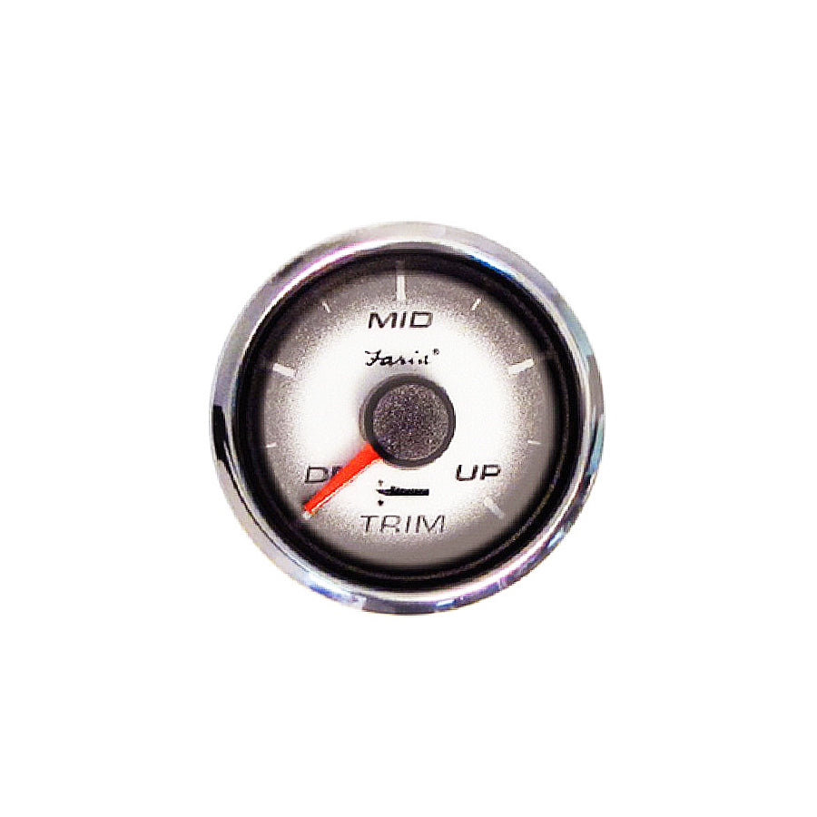Faria Digital Black Fate Trim Gauge (MG Digital)Back-lighted white dial with bold black graphics, polished stainless steel bezel, light-piped fire red pointer and black hub, and domed glass lens.