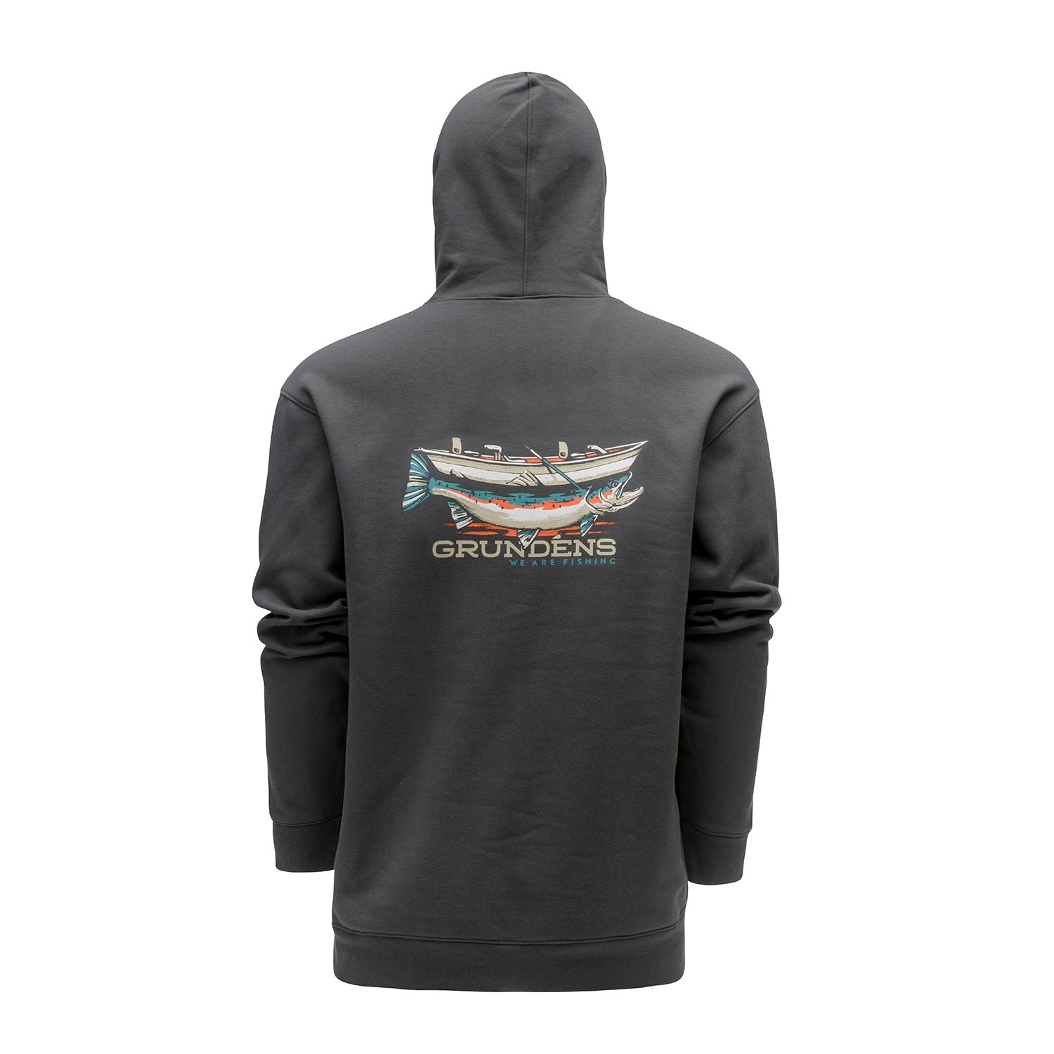 The Grundéns Drift Boat Hoodie features a custom drift boat and giant trout design sure to inspire you to make that "one last cast" for a true river monster. Specifications Ultra-Soft 50/50 Cotton-Poly Fleece Fabric Kangaroo-Style Hand-Warming Pocket Adjustable Hood Kill Switch Anchor Custom Grundéns Graphics