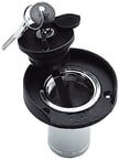 Chrome plated zinc. Black plastic flange and cap. With strap. Grounding screw included. Use #6 fasteners.
