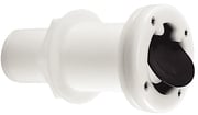 Thru-hull scupper with nut is used for mounting through the transom. Extra long length allows mounting on 2-1/8" thick surface, for use with 1-1/2" hose. Flange diameter 2-7/8"; white. Soft black flapper. Nut and mounting hardware included.