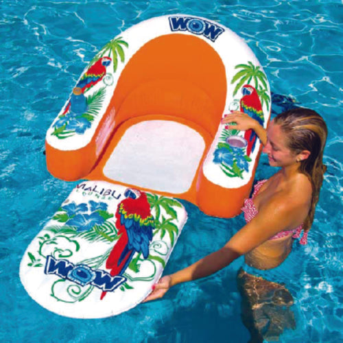 Great For Pool, Beach, Lake, River Tubing. The Malibu Lounge from WOW is a flip lounge with a high backrest and extended flip foot rest. Keep the seat up to stay dry or flip it down to kick your legs up and get a little wet. Relax in style and comfort with the Malibu Lounge from WOW. Heavy gauge PVC construction for durability.Ergonomic Armrest And HeadrestCool Comfort Mesh SeatingSide Grommet For Attaching Multiple Floating Lounges TogetherSpeed Valve For Fast Inflation And DeflationBuilt In Molded Cup HolderRiders 1Size 66" ÌÑ 36"Capacity 220 lbs.